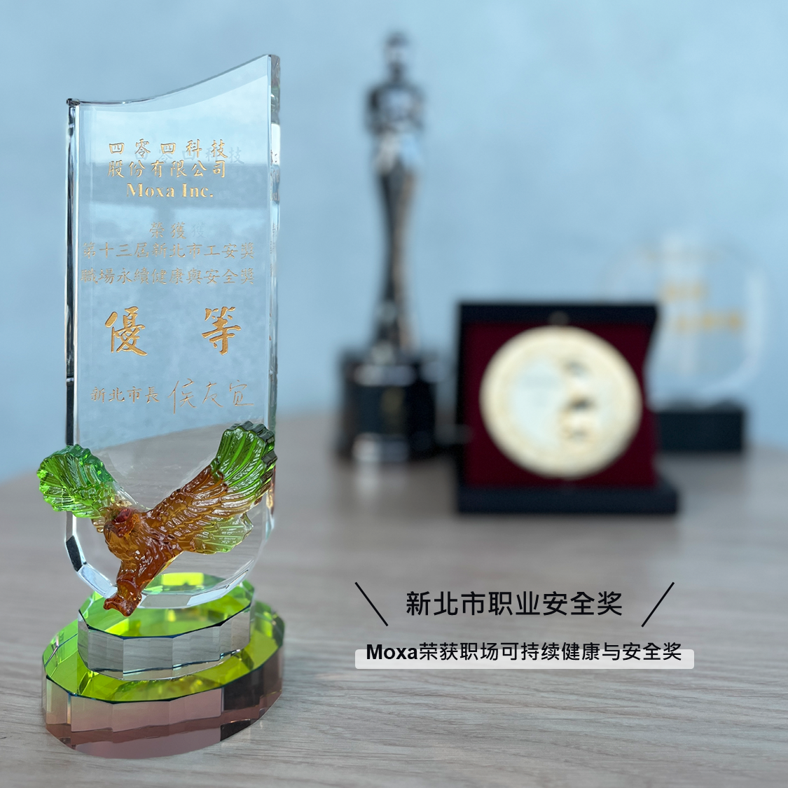 Moxa 因长期在职业健康与安全方面的努力和出色表现,于 2024 年荣获中国台湾“新北市职业安全奖”。该奖项肯定了 Moxa 在这方面的高度投入和成就,始终将每位员工的健康与安全置于首位。未来,Moxa 将继续加强工作场所安全管理,推动更全面的安全管理机制建设,努力成为让员工安心工作的优质企业,稳步朝着创建无事故工作环境的目标迈进。