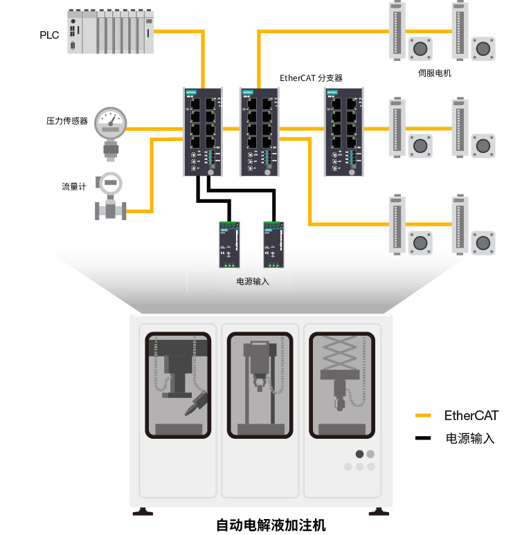 在锂离子电池制造设备中,将数百台 EtherCAT 从设备划分为多个网络分区的情况并不罕见。与此同时,制造商需确保在电力中断或系统不稳定时,各项操作仍能正常运行。由于制造商通常采用不同厂商的 EtherCAT 设备,设备间的互操作性成为另一关键考量。因此,评估并选择那些经过测试、可兼容不同厂商 EtherCAT 设备的产品,对确保这些设备无缝集成至现有拓扑结构至关重要。
