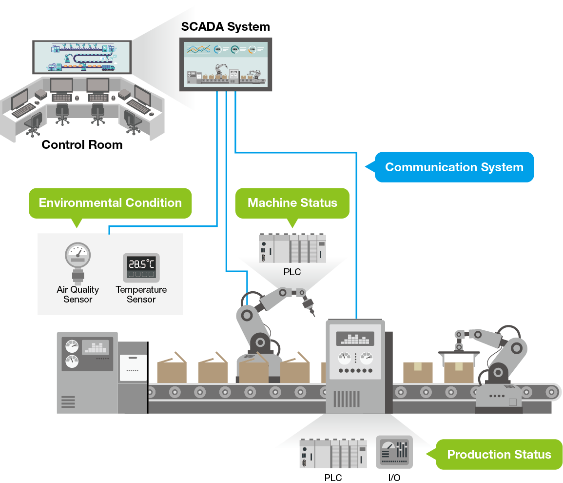 - 从传统设备获取运营信息。传统设备一般专为您的生产需求设计,可靠性高,使用时间长,但其中通常没有网络接口,或只具备串口等传统通讯接口。面对这种情况,可以考虑使用传感器来采集不具备任何通讯能力的设备中的生产信息,或使用串口转以太网解决方案,从传统设备中获取数据。