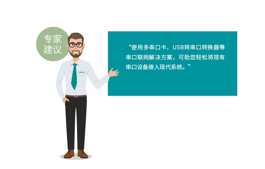如果基于串口连接的机器设备已经为您的企业服务了几十年时间,您可能会担忧它们的使用寿命。现今的计算机配备的串口越来越少,操作系统更新愈加频繁,系统种类也不断增多。此外,越来越多的企业采用线上管理模式,需要及时获取资产信息,从而最大限度地缩短响应时间,并依托获取更多的现场数据助力业务决策和高效运营。而这一切有赖于设备的联网能力。当谈及互联,两个问题至关重要。如果串口不再是计算机上的标准接口,您的串口设备如何连接到现代系统?如果您的设备无法连接到以太网接口,如何才能实现远程管理?