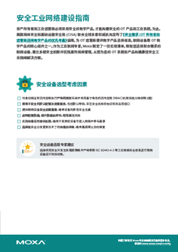 本指南旨在帮助您选择联网设备,建立分层安全机制,并有效地管理网络,为您的 OT 系统构建安全工业网络。