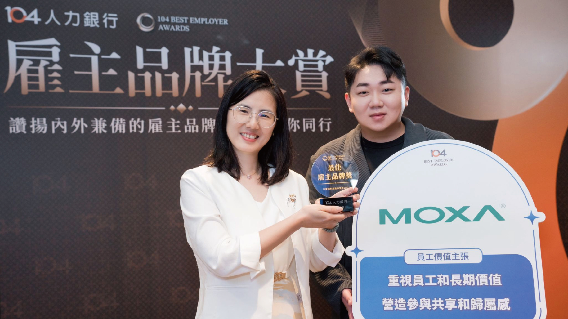 2024 年,中国台湾 104 人力银行首次举办最佳雇主奖评选活动,吸引了来自科技、数字、初创企业、制造、餐饮、服务、金融、电商等多个行业的 444 家企业参与。此次评选围绕两个核心维度展开:“人才吸引”维度评估企业在招聘渠道与方式、求职者关系管理以及员工价值主张等方面的表现;“员工留存”维度则关注员工满意度、领导力效能、职业发展、薪酬体系、企业文化和可持续发展等关键指标。评选过程综合运用大数据与人工智能算法,并结合行业专家的严格评审。在激烈的竞争中,仅有 10.4% 的参赛企业获奖。Moxa 凭借在人才发展和企业文化建设方面的出色表现,荣获“最佳雇主品牌奖”。这一荣誉体现了 Moxa“以人为本”的核心理念,凸显了其在人才培养、职场环境优化和文化建设方面取得的显著成就。
