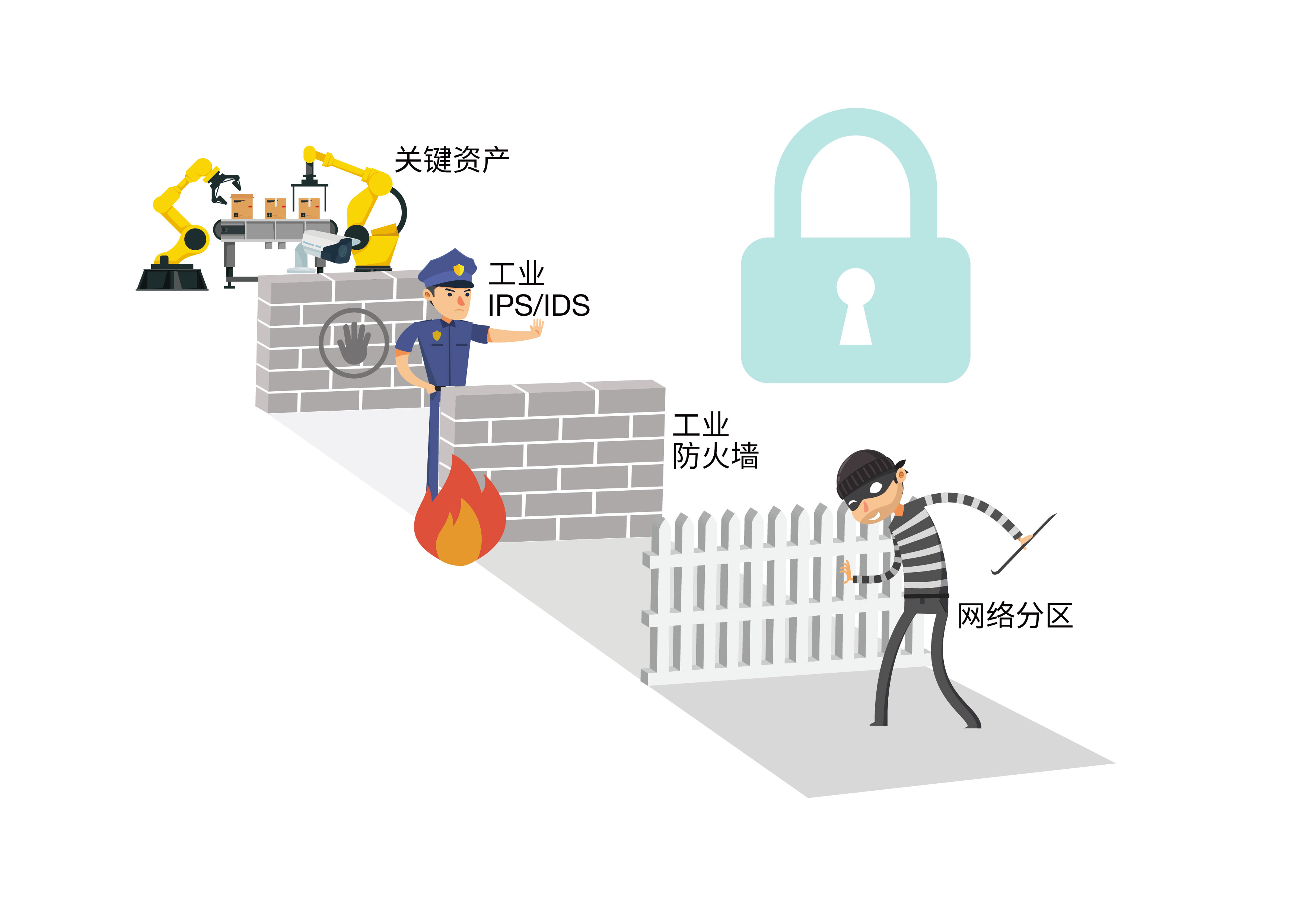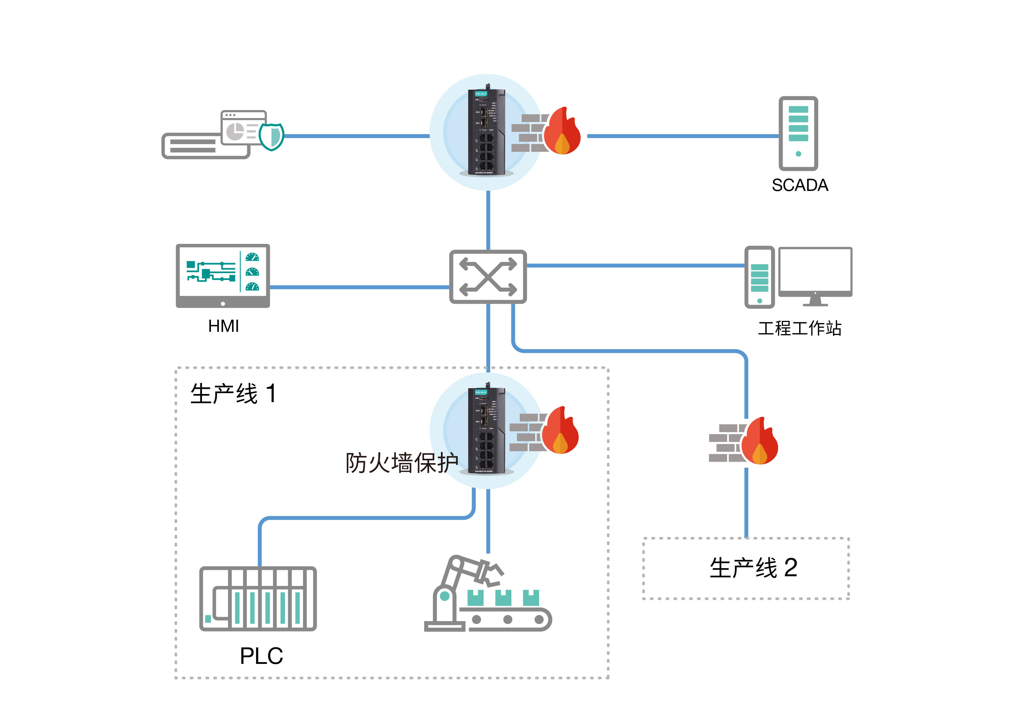 示意图:建立安全边界,确保发生网络安全事件时生产线不会相互影响