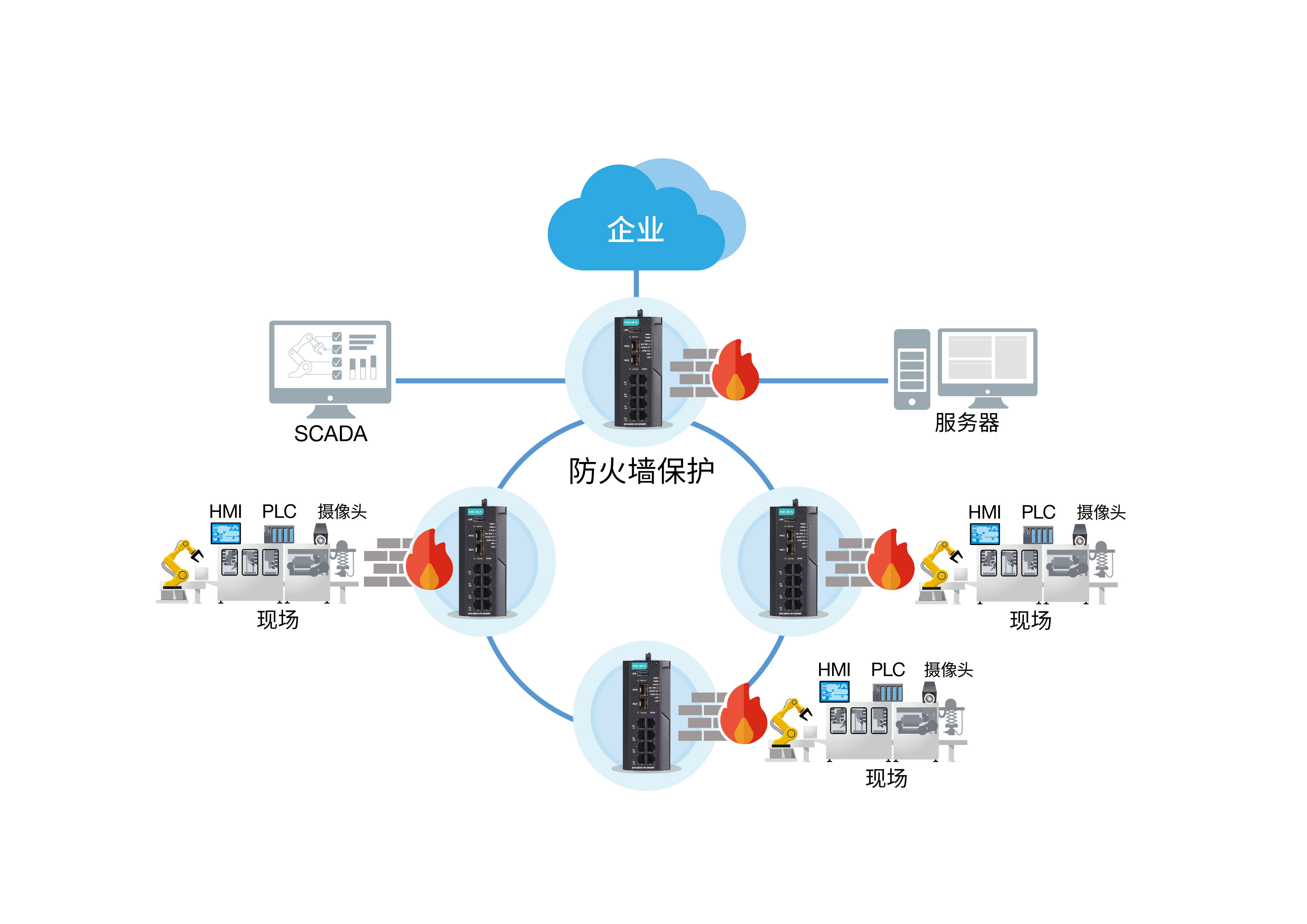 互联互通的工厂网络需要合理分区,加固工业网络安全壁垒。此外,网络冗余也是保障工业控制系统随时可用的必要一环。